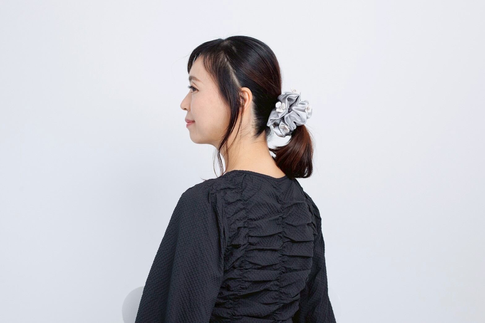 上質で貴重なフランス製アンティークレースを使ったハンドメイドのバレッタ。 ビーズやオリジナルカラーのシュガーパールもふんだんに付いています。 単品で付けても バレッタとシュシュを一緒に付けても その日のファッションに合わせてお楽しみいただけます。 シュシュのゴム部分はしっかりと伸び縮みがする こだわり抜いた日本製のゴムを使用しています。 バレッタ部分は毛量の少ない方でも滑り落ちずに しっかりと留まる物を使用しています。