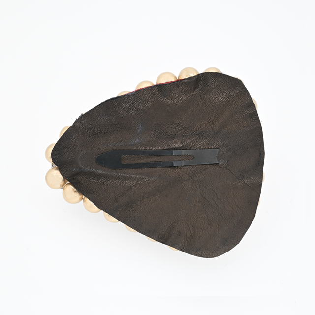 レザーの表面にアクリルビジューを貼りつけたぱっちん留め。