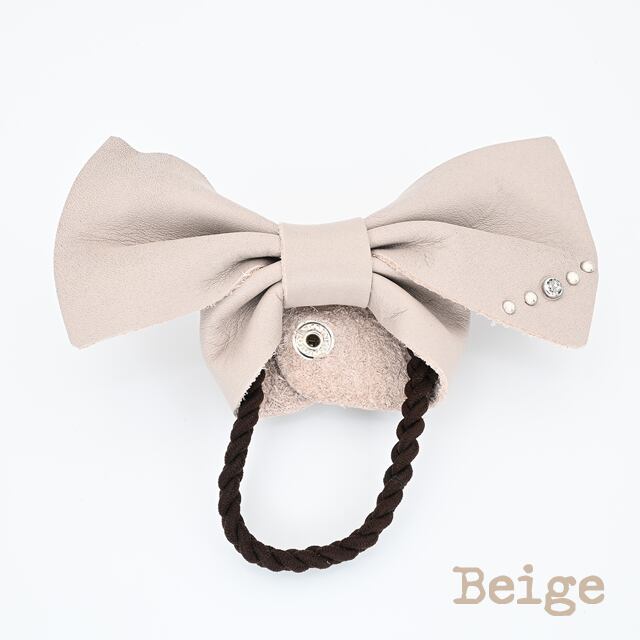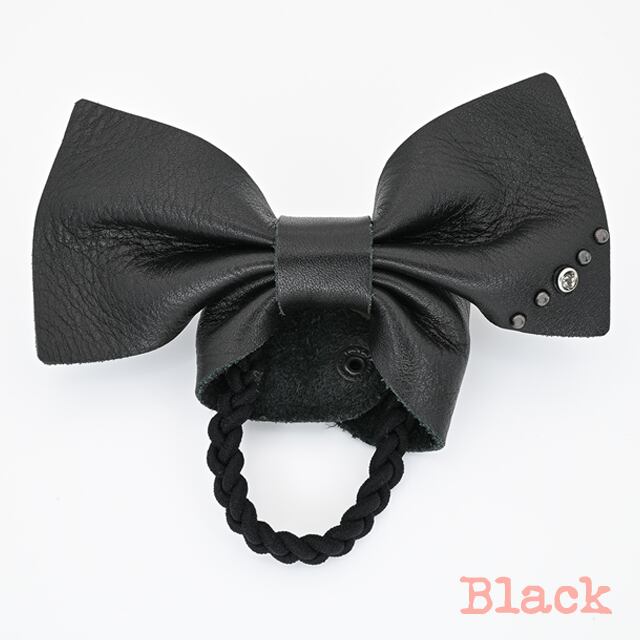厚めのレザーと大きくシンプルなリボン、甘すぎないリボンゴム。